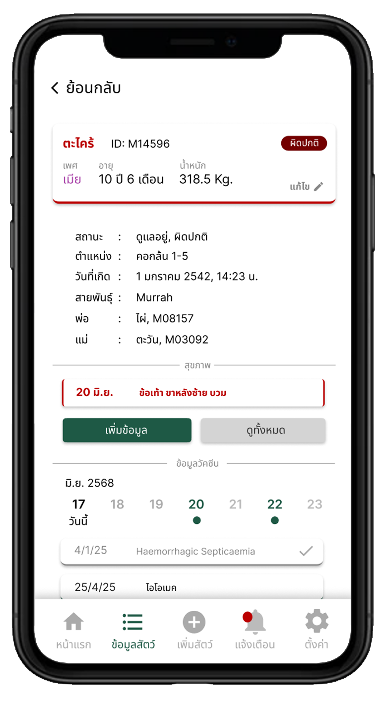 - บริหารดูแลสุขภาพสัตว์เช่นดูแล การเจริญเติบโต วัคซีน ได้อย่างแม่นยำ